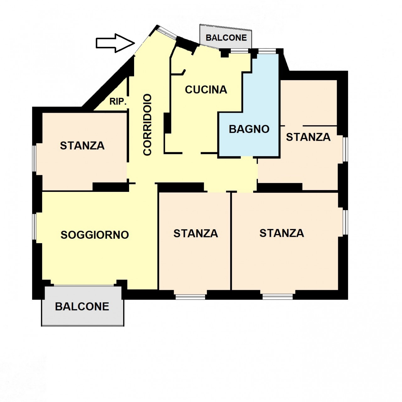 ELENCO VANI: corridoio, 4 camere da letto, soggiorno, cucina abitabile, 2 balconi, bagno-wc finestrato, cantina, soffitta.